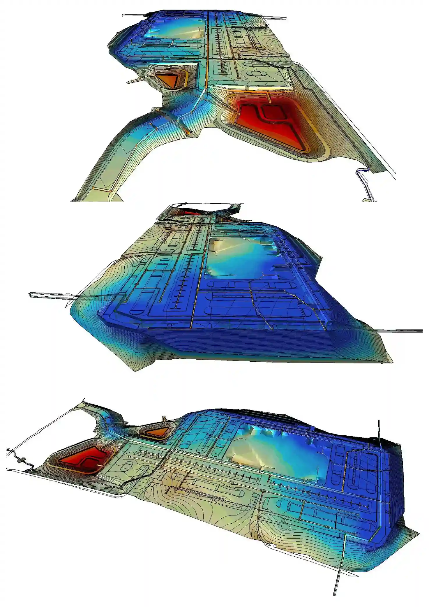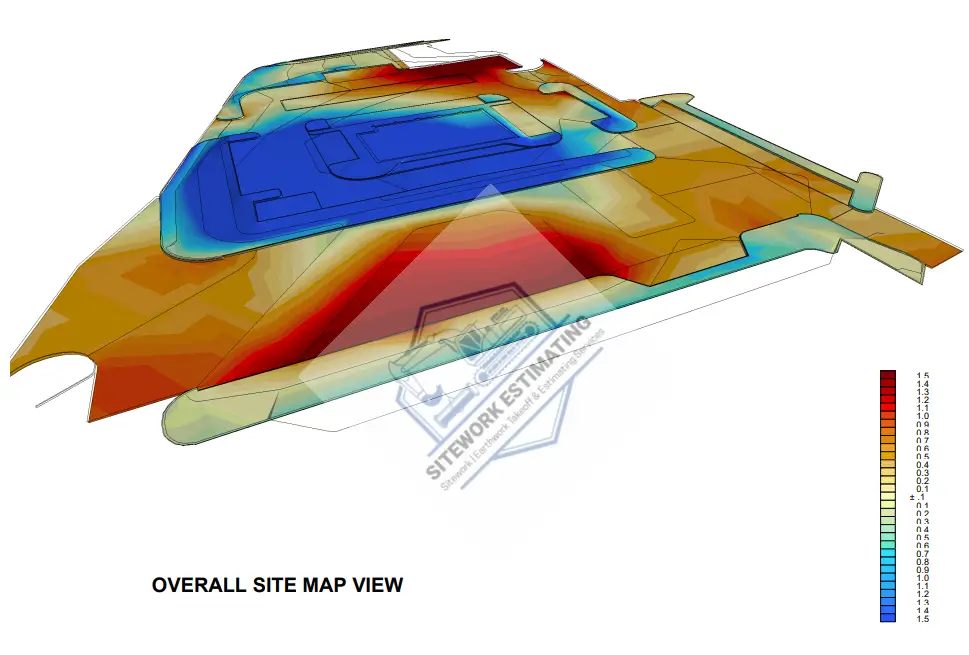 A 3D takeoff uses digital terrain modeling (DTM) software to create a three-dimensional model of the existing and proposed site surfaces. The software then calculates precise cut and fill volumes directly from the model.